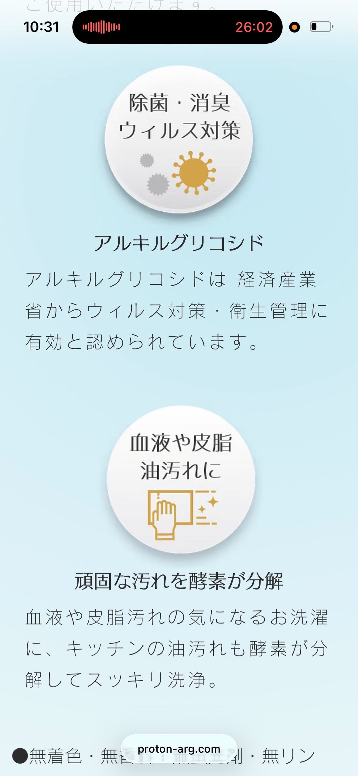 プロトン電子が汚れを包み込み99%生分解し無害な水に。